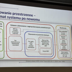 Ostatniego dnia wyjazdu studyjnego grupa gościła w Ministerstwie Rozwoju i Technologii, gdzie pan Łukasz Marciniak, zastępca dyrektora Departamentu Planowania Przestrzennego, przedstawił zarys polskiego systemu planowania przestrzennego. Następnie pracownicy Ministerstwa Funduszy i Polityki Regionalnej zaprezentowali przyjętą w 2025 roku Koncepcję Rozwoju Kraju 2050 oraz model struktury funkcjonalno-przestrzennej.