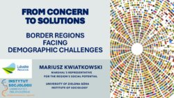 „From concern to solutions. Border regions facing demographig challenges” – prezentacja prof. dr. Mariusza Kwiatkowskiego (UZ), pełnomocnika marszałka województwa lubuskiego ds. potencjału społecznego regionu